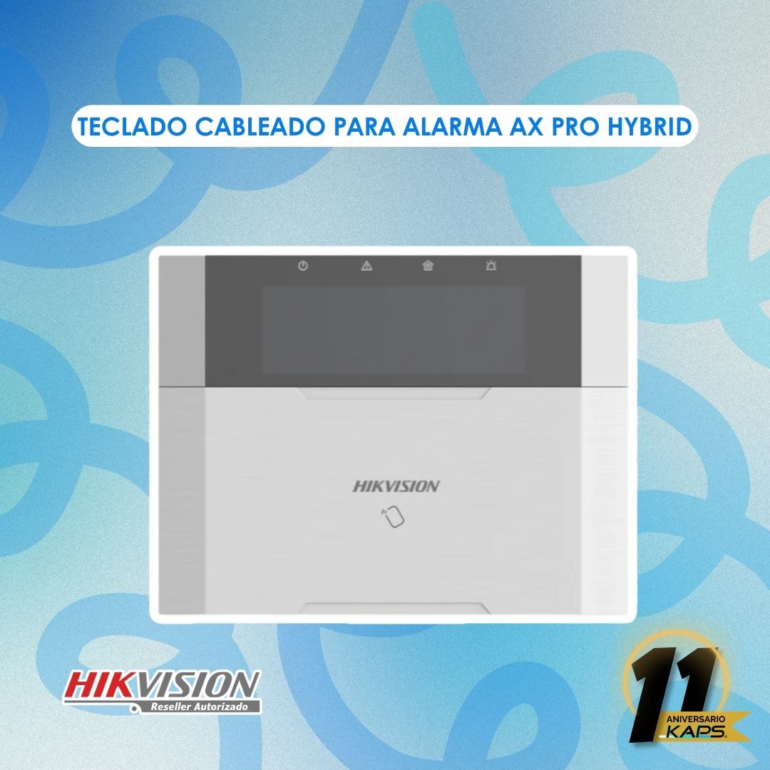 - Teclado cableado Hikvision para alarma AX Pro Hybrid DS-PK1-LRT-HWB: Un teclado fácil de usar para armar y desarmar tu sistema de alarma. Cuenta con una pantalla LCD para visualizar el estado del sistema y teclas de acceso rápido para funciones comunes, como activar o desactivar la alarma o consultar el historial de eventos.