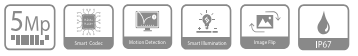 · Sensor de imagen CMOS de 5MP 1/2.7", baja luminosidad y alta definición imagen.