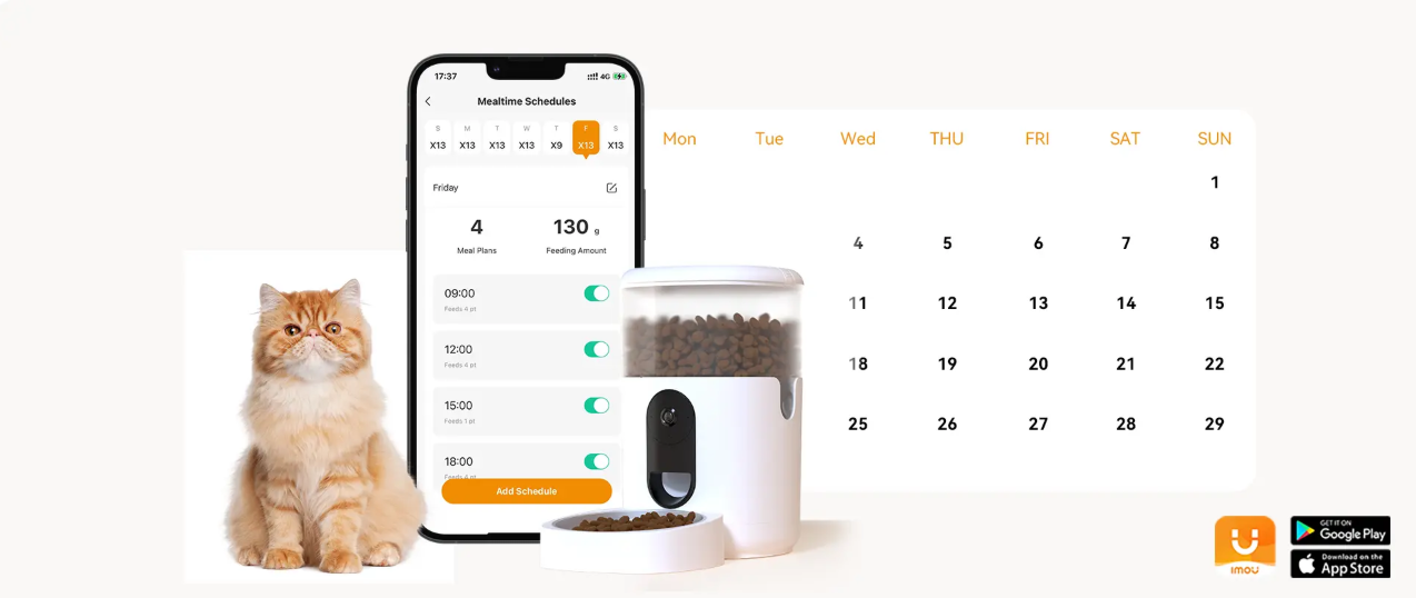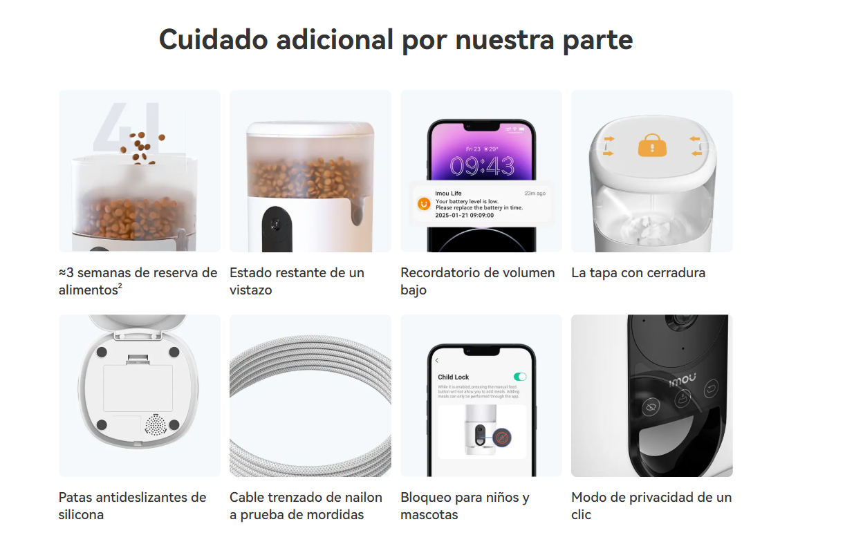 Puedes establecer horarios y cantidades de alimentación diarias a través de la aplicación IMOU Life, para que no tengas que preocuparte por tu mascota incluso cuando no estés en casa.