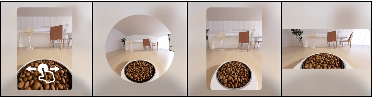 Con la lente ojo de pez de 360°, no solo puedes ver todo el comedero, sino que también funciona como una cámara para mascotas. Ofrece múltiples modos de visión: ojo de pez, cámara doméstica, tazón y realidad virtual. La captura con IA, basada en la detección de mascotas y de comida, te ayuda a capturar los mejores momentos de tus mascotas y a desarrollar hábitos alimenticios saludables. El modo de dispensación inteligente evita el desperdicio de comida al detectar si queda comida sobrante en el tazón antes de comenzar el plan de comidas.