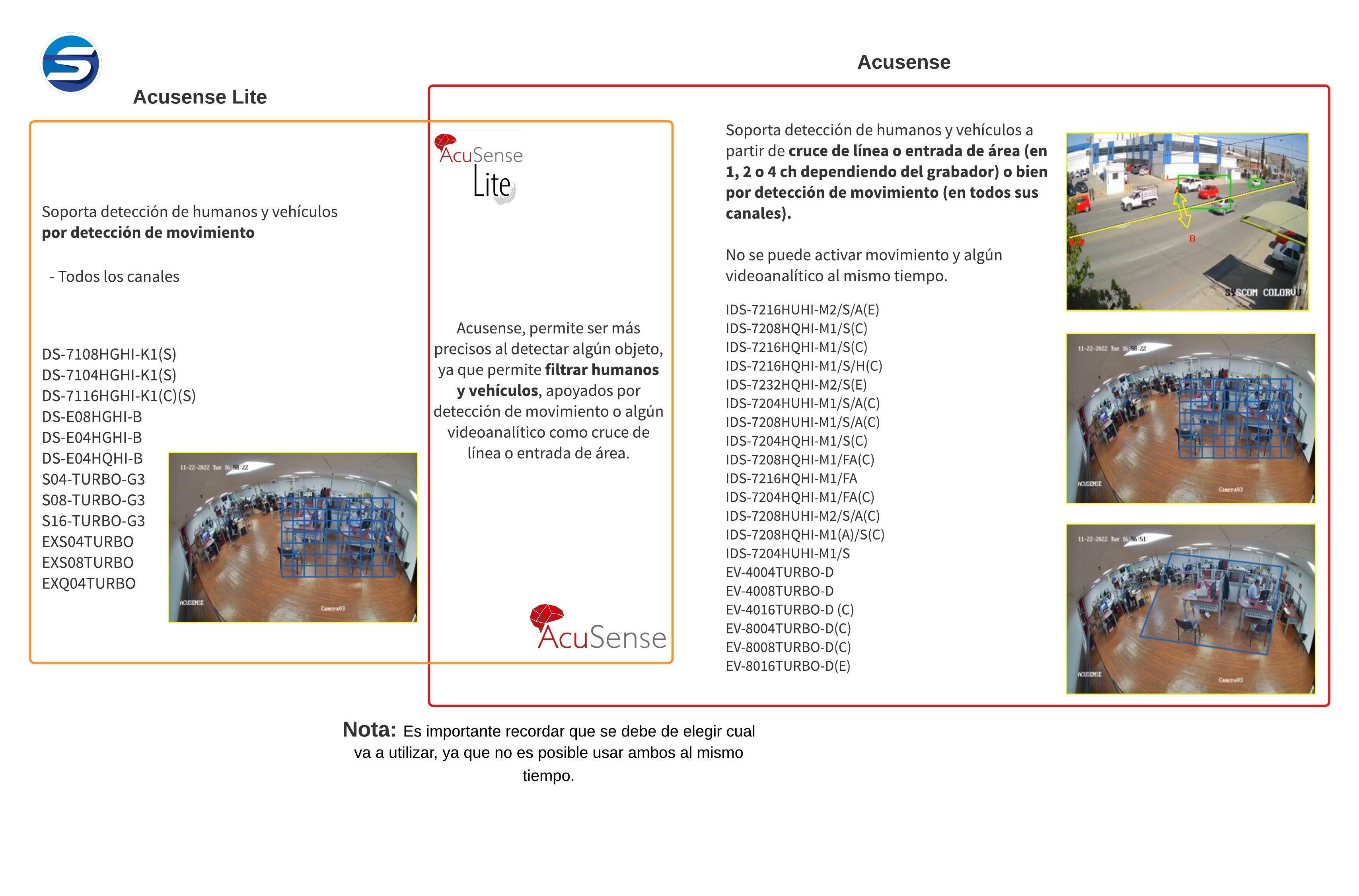 - Cuenta con AcuSense para filtar humanos y vehiculos por detección de movimiento (No cuenta con videoanaliticos como cruces de linea / entrada de area)