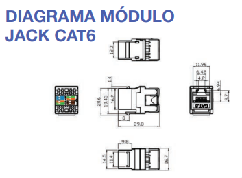 Los módulos CAT 6 RJ-45 UTP, con enganche tipo keystone son diseñados para un alto rendimiento y montaje fácil, admitiendo aplicaciones de Gigabit Ethernet. Cumple y supera las normativas ANSI/TIA 568-C.2 e ISO/IEC 11801. Diseño estrecho y compacto con conexión a 180°, permite altas densidades en Placas Patch vacías de 48 puertos en 1 unidad de Rack.