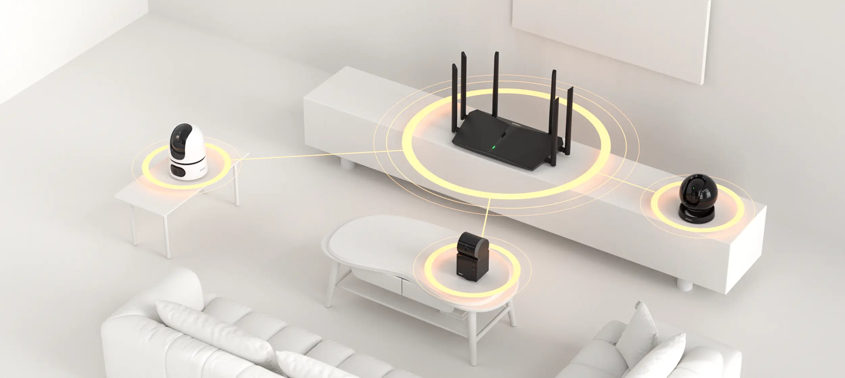 Malla flexible, sin límites. El Imou Link 2.0 Mesh mejorado admite tres métodos de malla: inalámbrica, cableada y paralela. Ya sea en una villa, un apartamento o cualquier lugar con muchas particiones e interferencias, puede lograr una cobertura de señal Wi-Fi fluida.